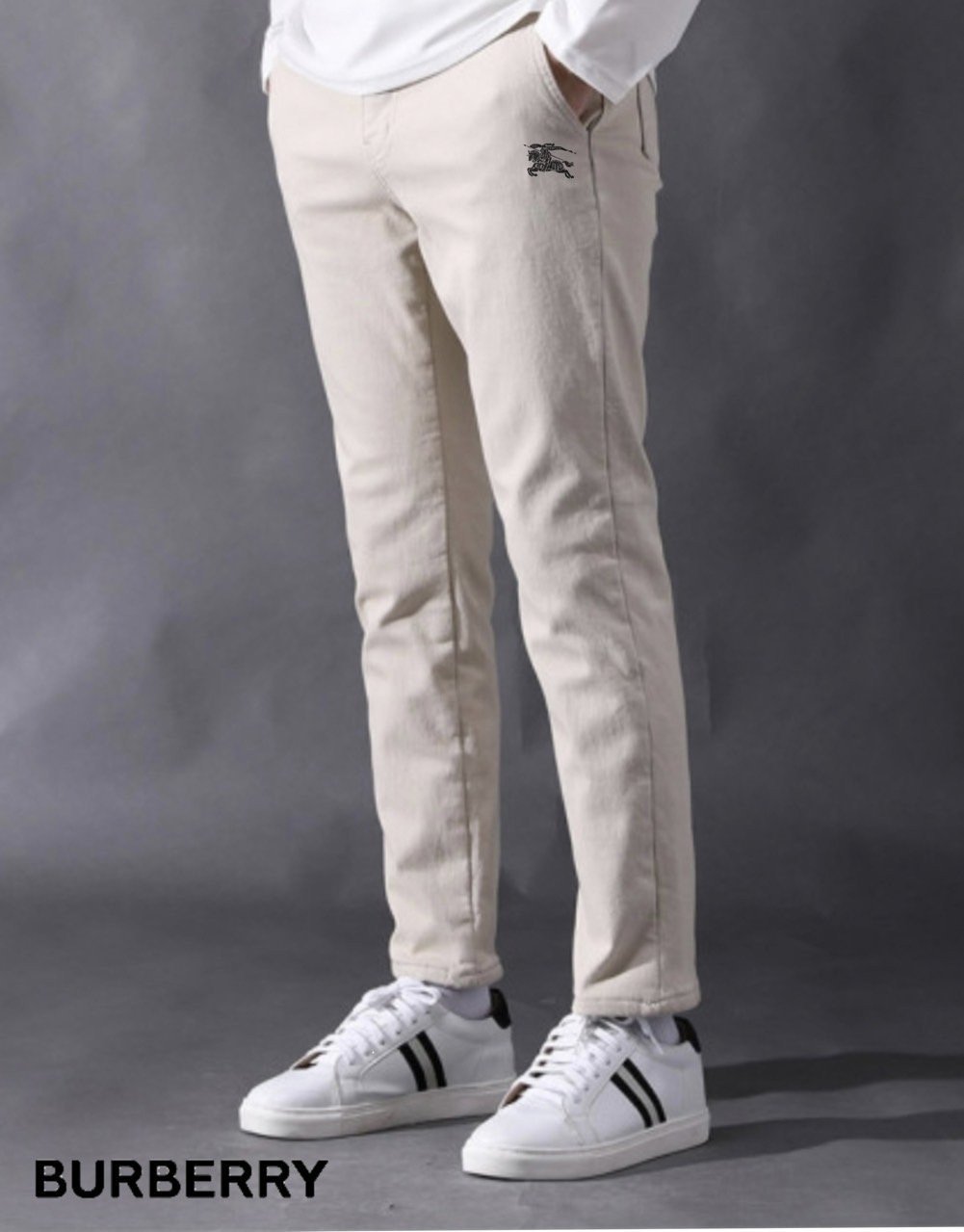 버버리 기사 자수 로고 히든 밴딩 기모 면 워싱 스판 팬츠 (바지)