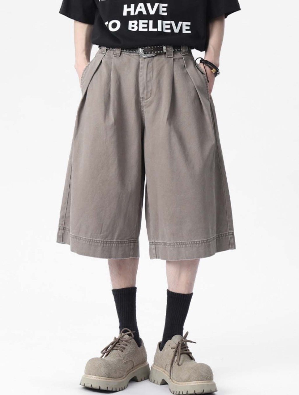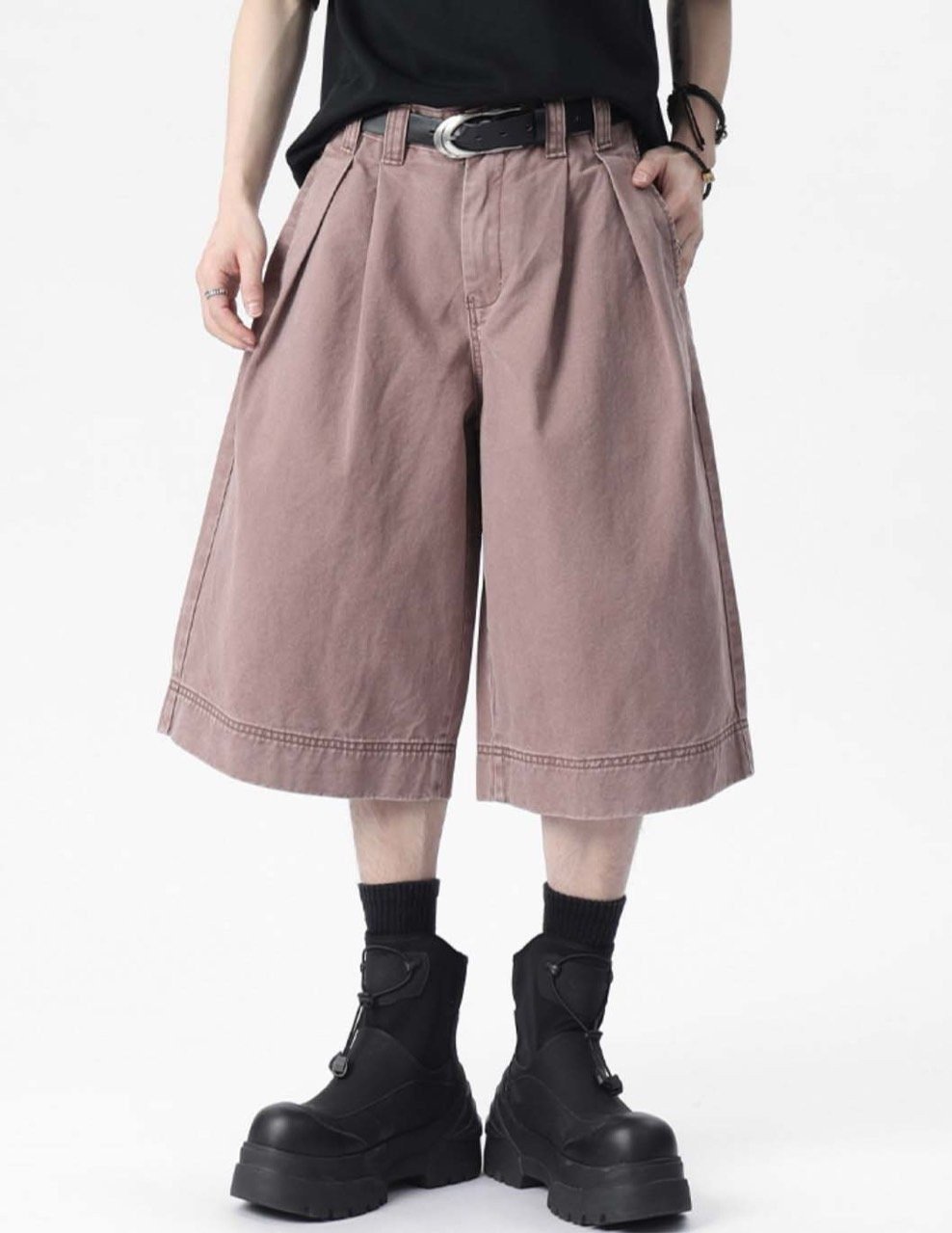 👖 버뮤다 기장, 남녀 공용, 투핀턱 디테일, 피그먼트원단